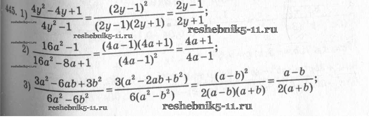 Готовая домашняя работа с ответами по Алгебре за 7 класс Колягин, Ткачёва, Федорова, Шабунин Учебник Просвещение 2014 ФГОС - §24. Алгебраическая дробь. Сокращение дробей 445