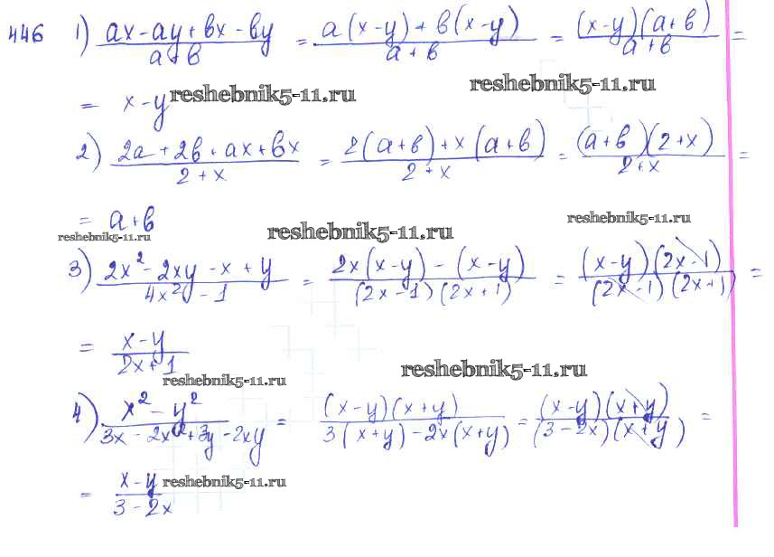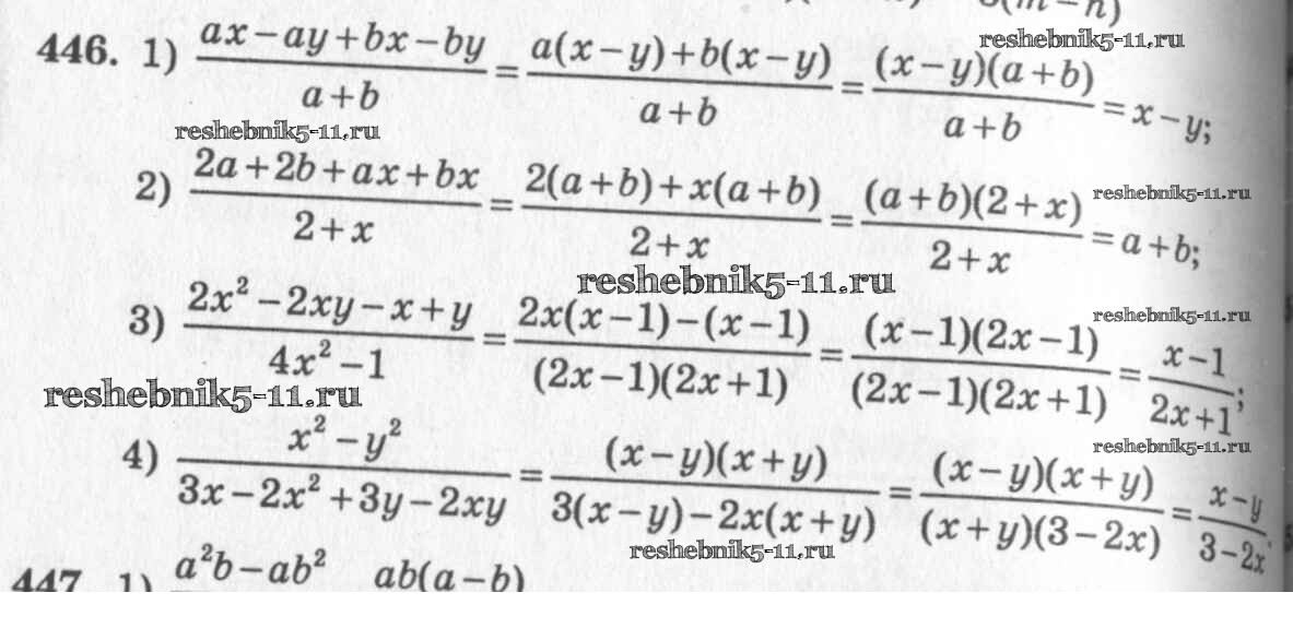 Готовая домашняя работа с ответами по Алгебре за 7 класс Колягин, Ткачёва, Федорова, Шабунин Учебник Просвещение 2014 ФГОС - §24. Алгебраическая дробь. Сокращение дробей 446