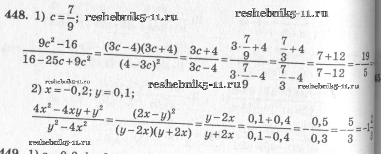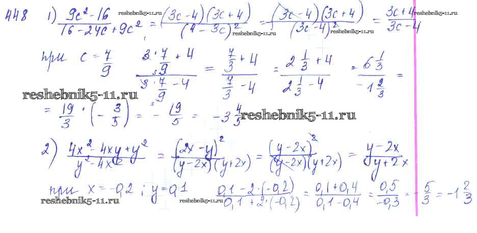 Готовая домашняя работа с ответами по Алгебре за 7 класс Колягин, Ткачёва, Федорова, Шабунин Учебник Просвещение 2014 ФГОС - §24. Алгебраическая дробь. Сокращение дробей 448