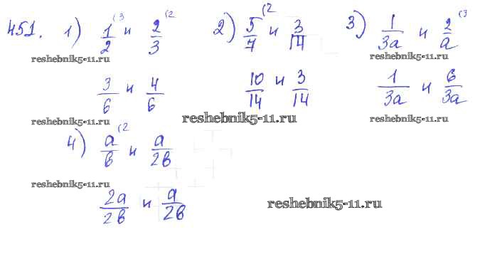 Готовая домашняя работа с ответами по Алгебре за 7 класс Колягин, Ткачёва, Федорова, Шабунин Учебник Просвещение 2014 ФГОС - §25. Приведение дробей к общему знаменателю 451