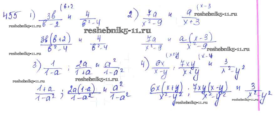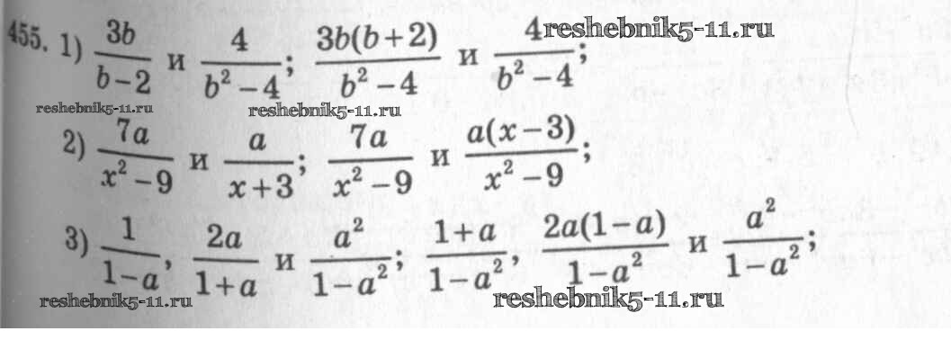Готовая домашняя работа с ответами по Алгебре за 7 класс Колягин, Ткачёва, Федорова, Шабунин Учебник Просвещение 2014 ФГОС - §25. Приведение дробей к общему знаменателю 455