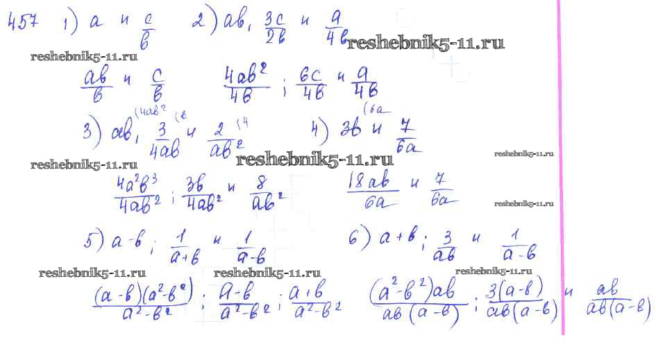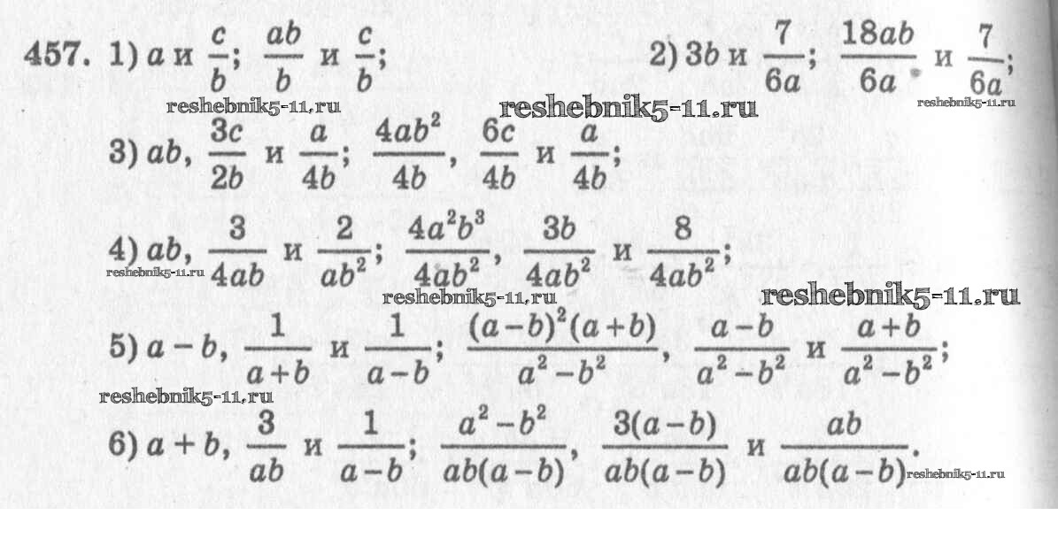 Готовая домашняя работа с ответами по Алгебре за 7 класс Колягин, Ткачёва, Федорова, Шабунин Учебник Просвещение 2014 ФГОС - §25. Приведение дробей к общему знаменателю 457