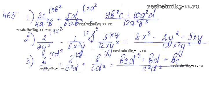 Готовая домашняя работа с ответами по Алгебре за 7 класс Колягин, Ткачёва, Федорова, Шабунин Учебник Просвещение 2014 ФГОС - §26. Сложение и вычитание алгебраических дробей 465