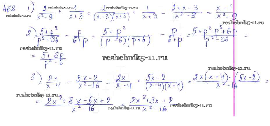 Готовая домашняя работа с ответами по Алгебре за 7 класс Колягин, Ткачёва, Федорова, Шабунин Учебник Просвещение 2014 ФГОС - §26. Сложение и вычитание алгебраических дробей 468