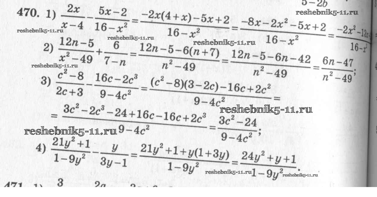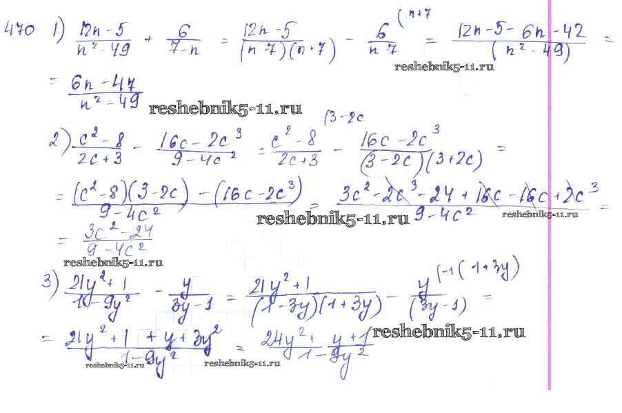 Готовая домашняя работа с ответами по Алгебре за 7 класс Колягин, Ткачёва, Федорова, Шабунин Учебник Просвещение 2014 ФГОС - §26. Сложение и вычитание алгебраических дробей 470