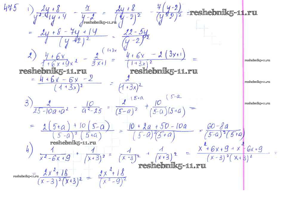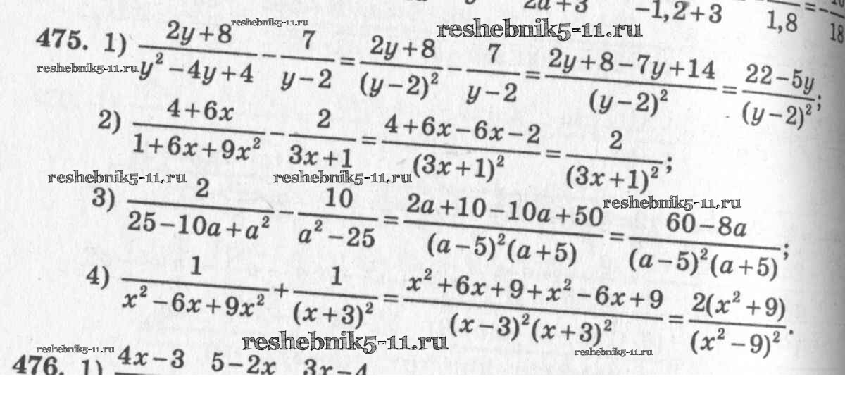 Готовая домашняя работа с ответами по Алгебре за 7 класс Колягин, Ткачёва, Федорова, Шабунин Учебник Просвещение 2014 ФГОС - §26. Сложение и вычитание алгебраических дробей 475
