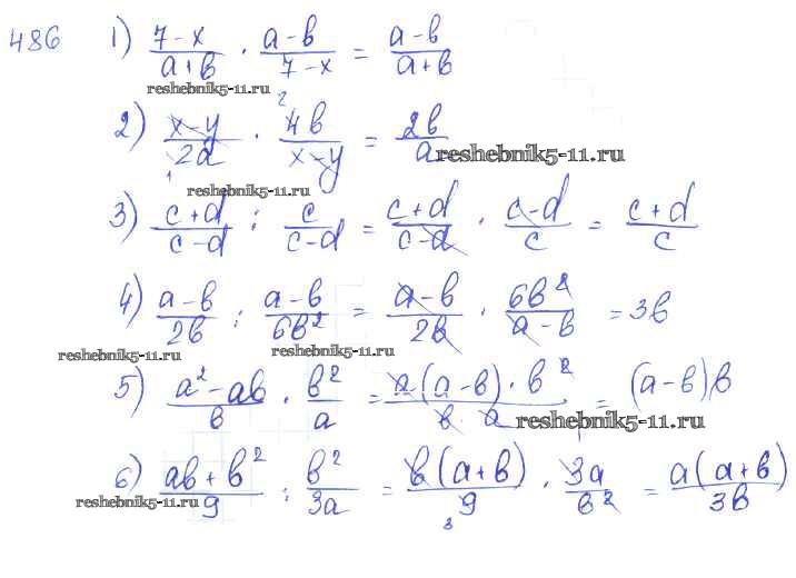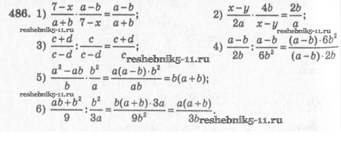 Готовая домашняя работа с ответами по Алгебре за 7 класс Колягин, Ткачёва, Федорова, Шабунин Учебник Просвещение 2014 ФГОС - §27. Умножение и деление алгебраических дробей 486