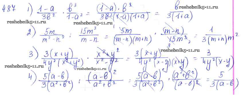 Готовая домашняя работа с ответами по Алгебре за 7 класс Колягин, Ткачёва, Федорова, Шабунин Учебник Просвещение 2014 ФГОС - §27. Умножение и деление алгебраических дробей 487