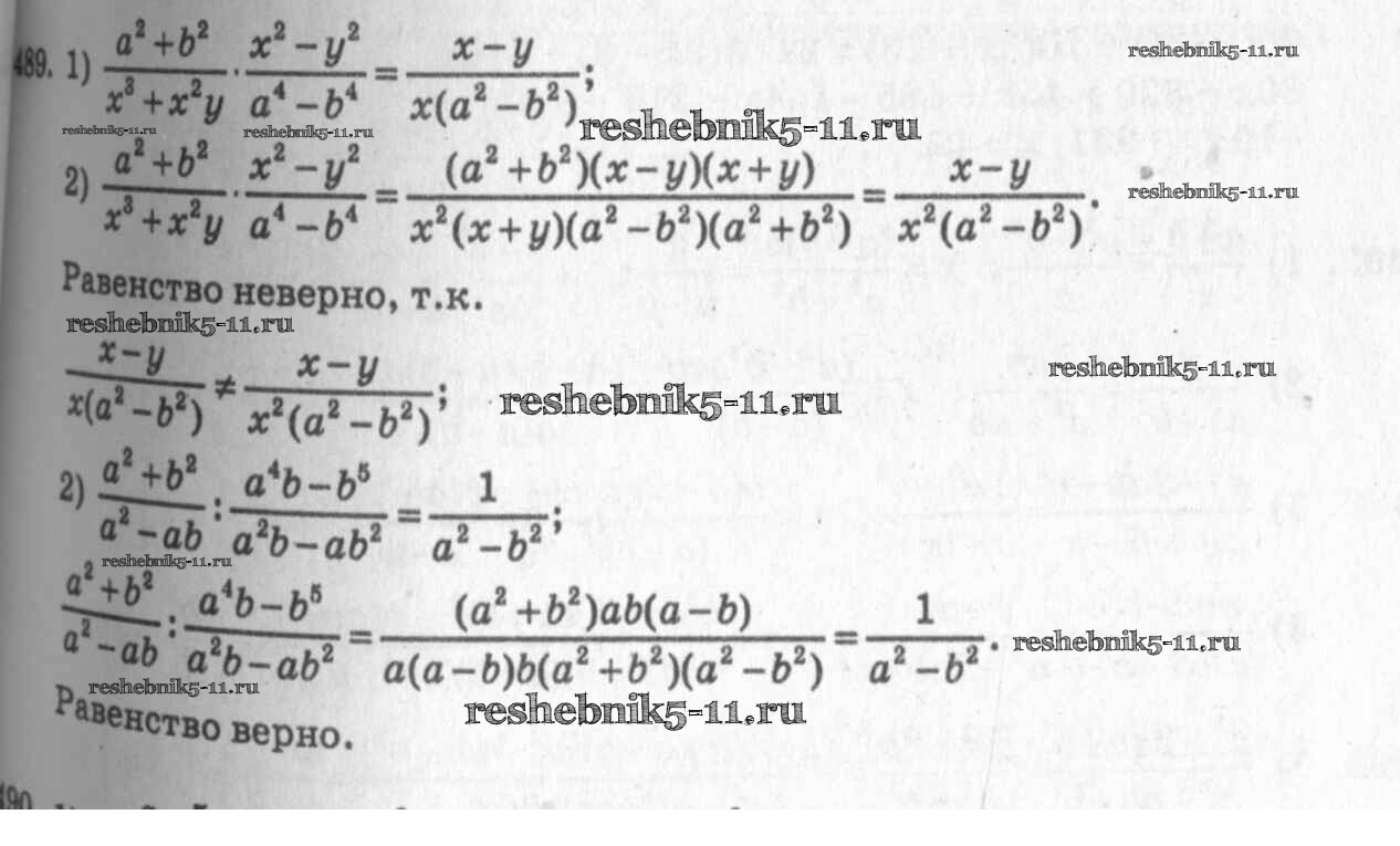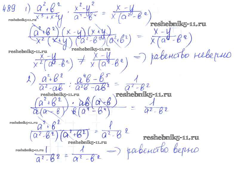 Готовая домашняя работа с ответами по Алгебре за 7 класс Колягин, Ткачёва, Федорова, Шабунин Учебник Просвещение 2014 ФГОС - §27. Умножение и деление алгебраических дробей 489