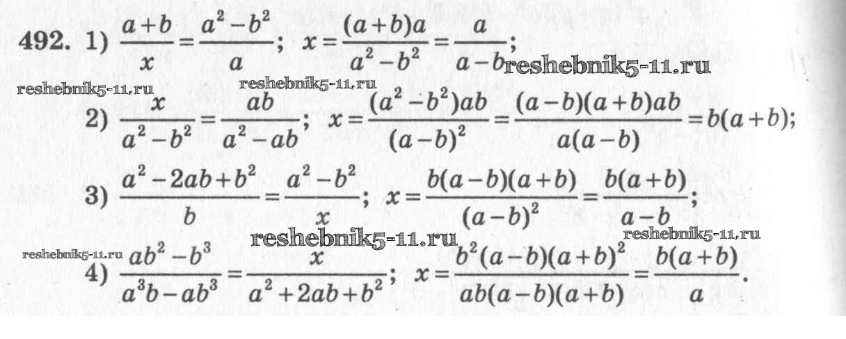 Готовая домашняя работа с ответами по Алгебре за 7 класс Колягин, Ткачёва, Федорова, Шабунин Учебник Просвещение 2014 ФГОС - §27. Умножение и деление алгебраических дробей 492