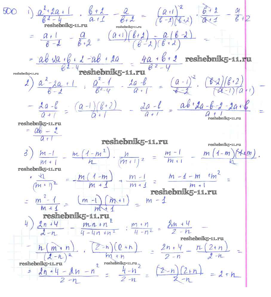Готовая домашняя работа с ответами по Алгебре за 7 класс Колягин, Ткачёва, Федорова, Шабунин Учебник Просвещение 2014 ФГОС - §28. Совместные действия над алгебраическими дробями 500