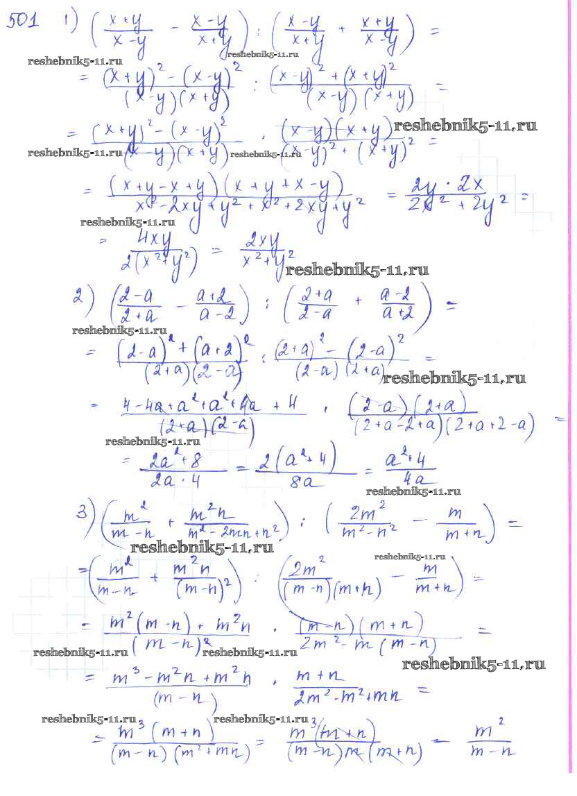 Готовая домашняя работа с ответами по Алгебре за 7 класс Колягин, Ткачёва, Федорова, Шабунин Учебник Просвещение 2014 ФГОС - §28. Совместные действия над алгебраическими дробями 501