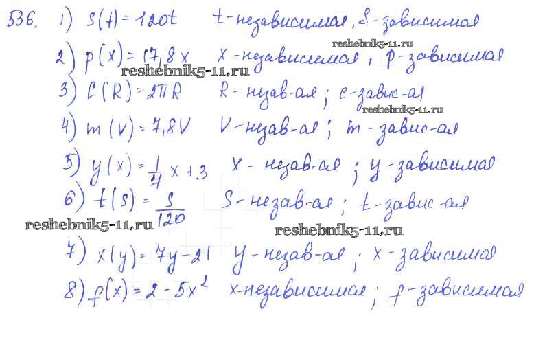 Готовая домашняя работа с ответами по Алгебре за 7 класс Колягин, Ткачёва, Федорова, Шабунин Учебник Просвещение 2014 ФГОС - §30. Функция 536