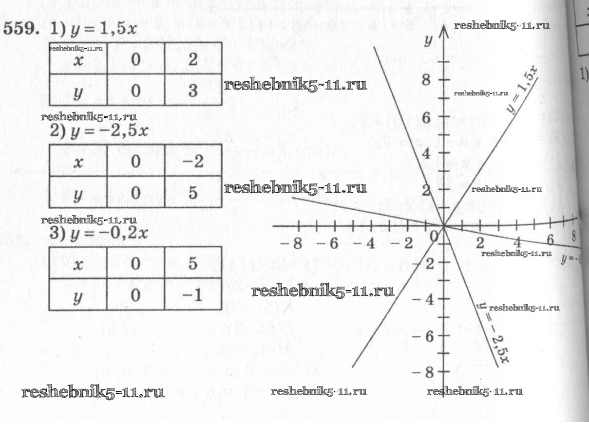 Готовая домашняя работа с ответами по Алгебре за 7 класс Колягин, Ткачёва, Федорова, Шабунин Учебник Просвещение 2014 ФГОС - §31. Функция y=kx и ее график 559