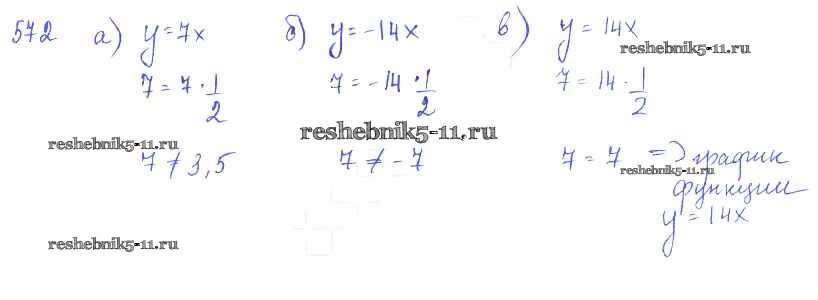 Готовая домашняя работа с ответами по Алгебре за 7 класс Колягин, Ткачёва, Федорова, Шабунин Учебник Просвещение 2014 ФГОС - §31. Функция y=kx и ее график 572