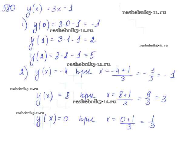 Готовая домашняя работа с ответами по Алгебре за 7 класс Колягин, Ткачёва, Федорова, Шабунин Учебник Просвещение 2014 ФГОС - §32. Линейная функция и ее график 580