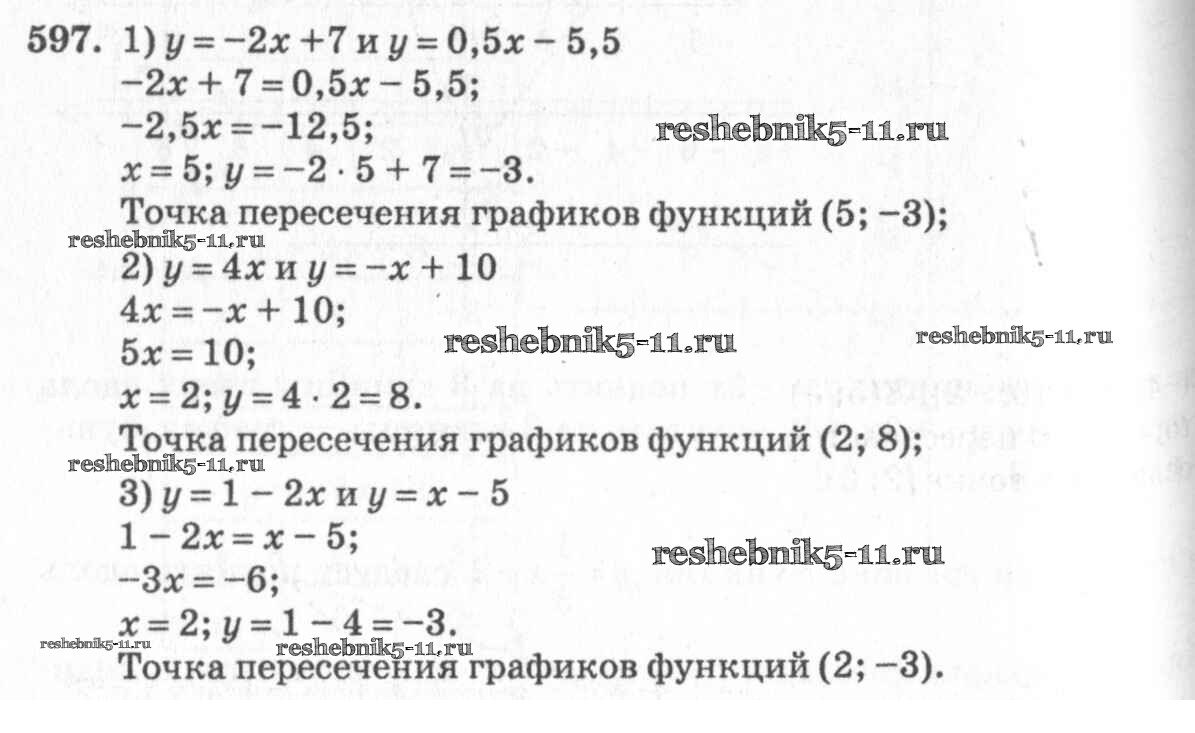 Готовая домашняя работа с ответами по Алгебре за 7 класс Колягин, Ткачёва, Федорова, Шабунин Учебник Просвещение 2014 ФГОС - §32. Линейная функция и ее график 597