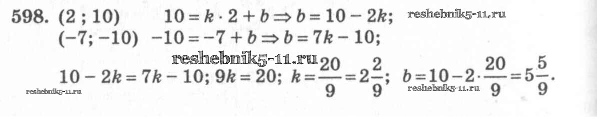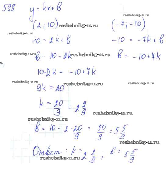 Готовая домашняя работа с ответами по Алгебре за 7 класс Колягин, Ткачёва, Федорова, Шабунин Учебник Просвещение 2014 ФГОС - §32. Линейная функция и ее график 598