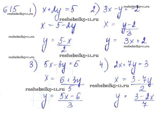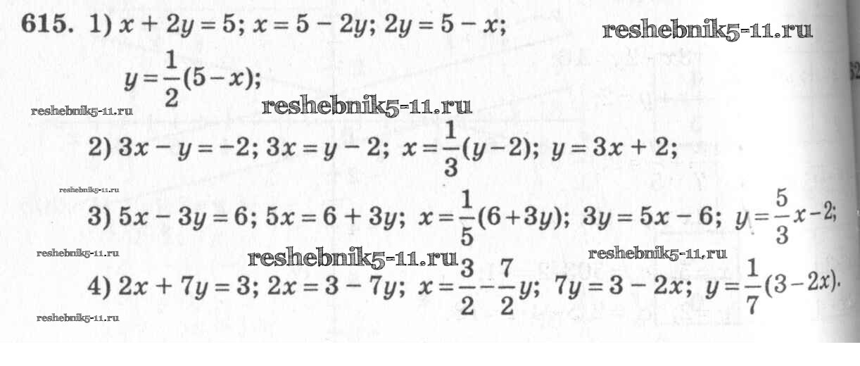 Готовая домашняя работа с ответами по Алгебре за 7 класс Колягин, Ткачёва, Федорова, Шабунин Учебник Просвещение 2014 ФГОС - §33. Уравнения первой степени с двумя неизвестными. Системы уравнений 615