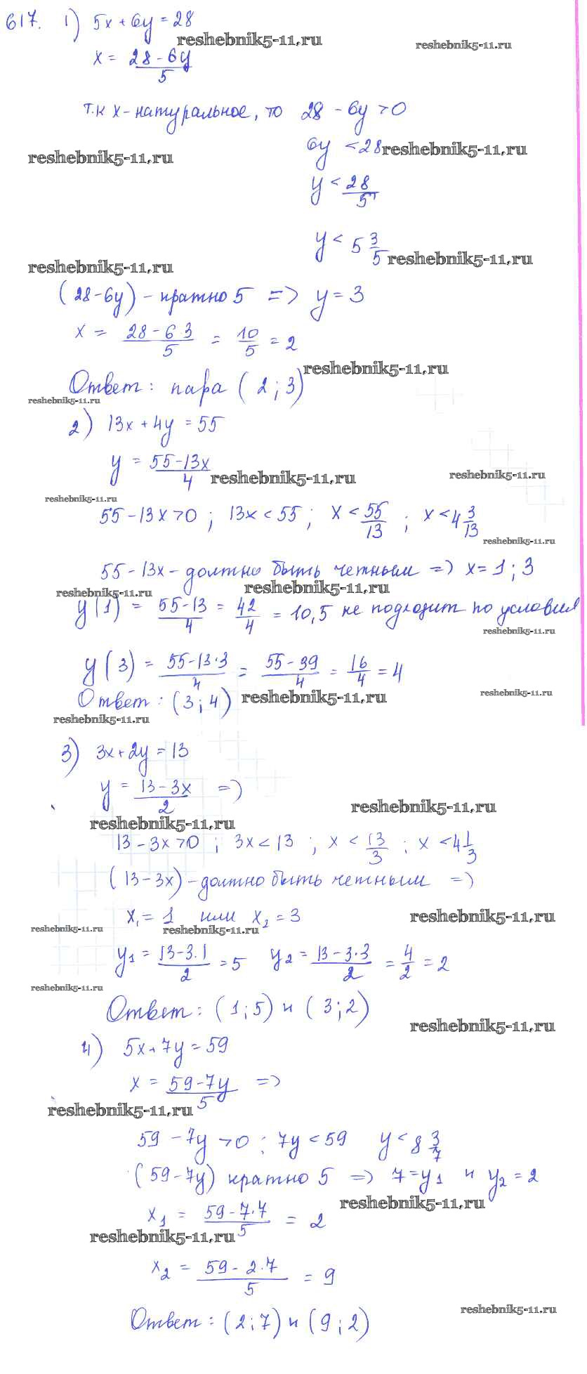 Готовая домашняя работа с ответами по Алгебре за 7 класс Колягин, Ткачёва, Федорова, Шабунин Учебник Просвещение 2014 ФГОС - §33. Уравнения первой степени с двумя неизвестными. Системы уравнений 617