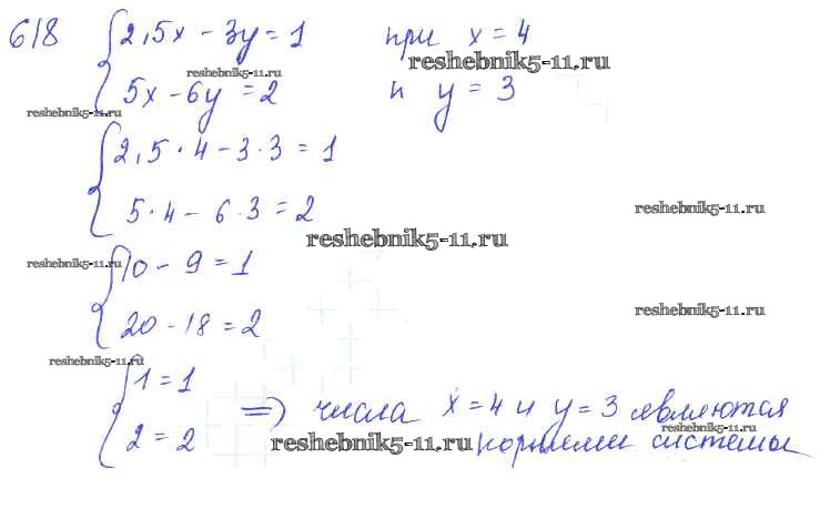 Готовая домашняя работа с ответами по Алгебре за 7 класс Колягин, Ткачёва, Федорова, Шабунин Учебник Просвещение 2014 ФГОС - §33. Уравнения первой степени с двумя неизвестными. Системы уравнений 618