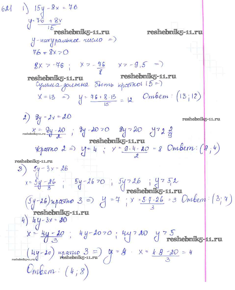 Готовая домашняя работа с ответами по Алгебре за 7 класс Колягин, Ткачёва, Федорова, Шабунин Учебник Просвещение 2014 ФГОС - §33. Уравнения первой степени с двумя неизвестными. Системы уравнений 621
