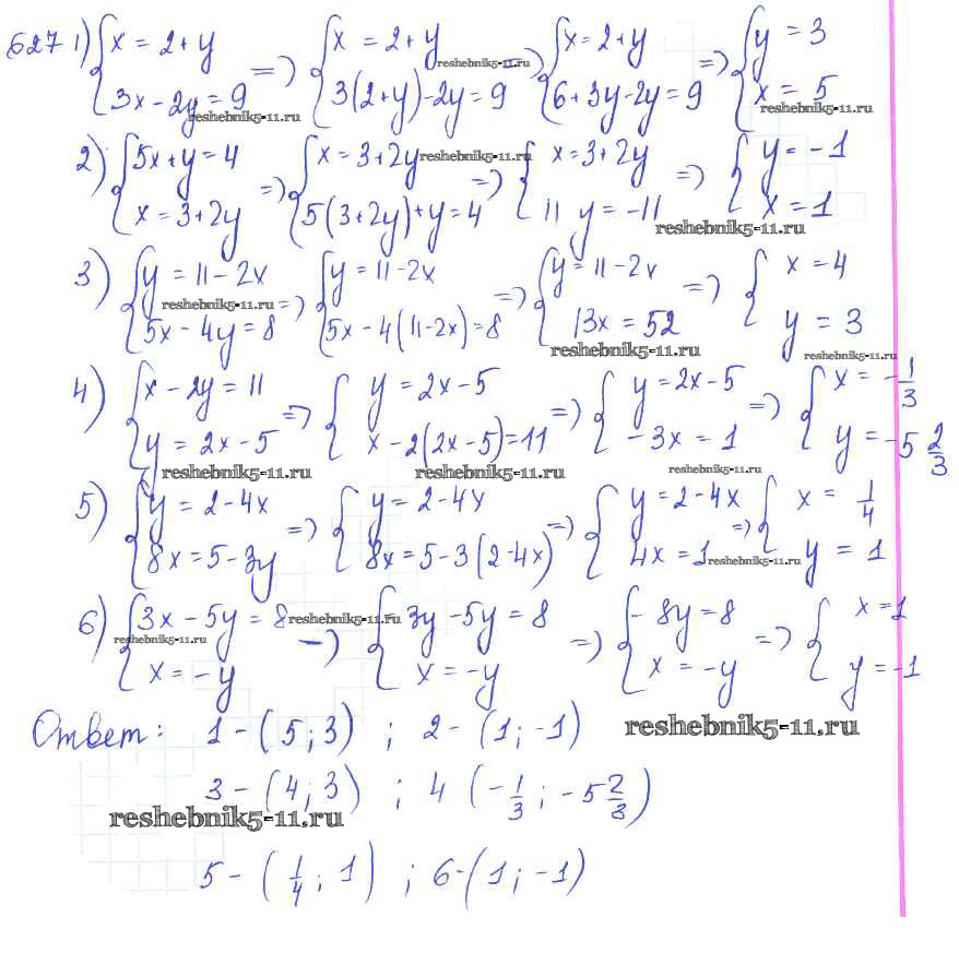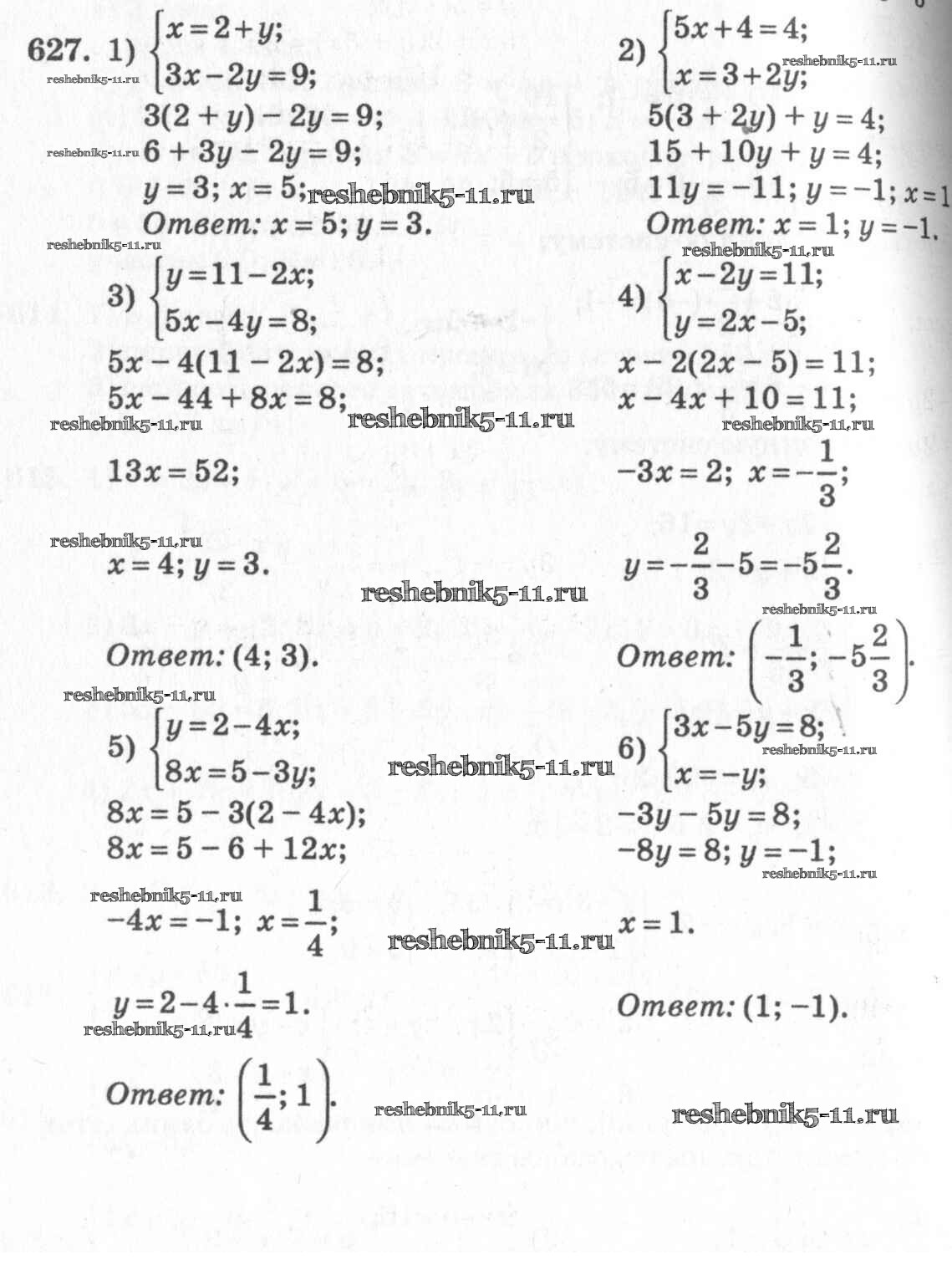 Готовая домашняя работа с ответами по Алгебре за 7 класс Колягин, Ткачёва, Федорова, Шабунин Учебник Просвещение 2014 ФГОС - §34. Способ подстановки 627
