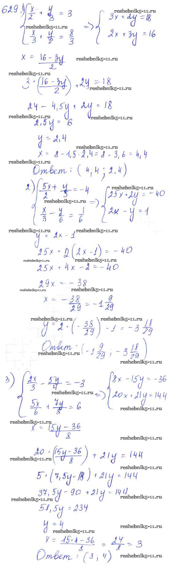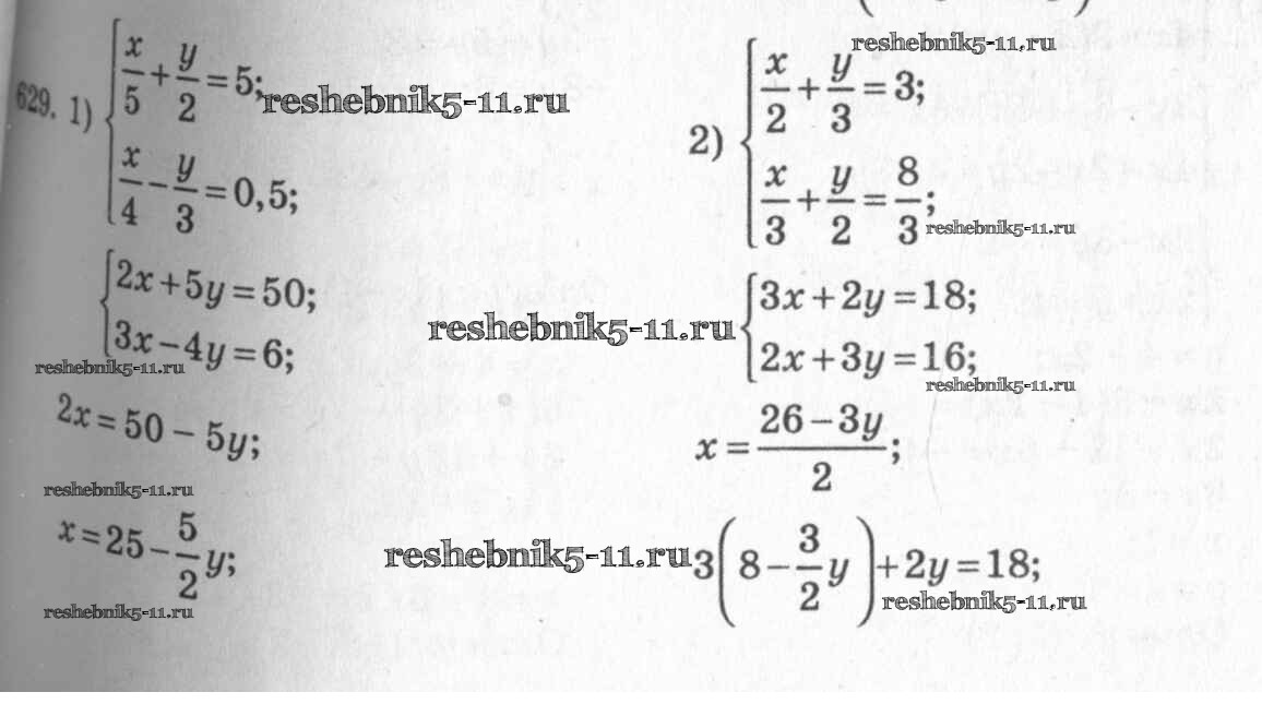 Готовая домашняя работа с ответами по Алгебре за 7 класс Колягин, Ткачёва, Федорова, Шабунин Учебник Просвещение 2014 ФГОС - §34. Способ подстановки 629