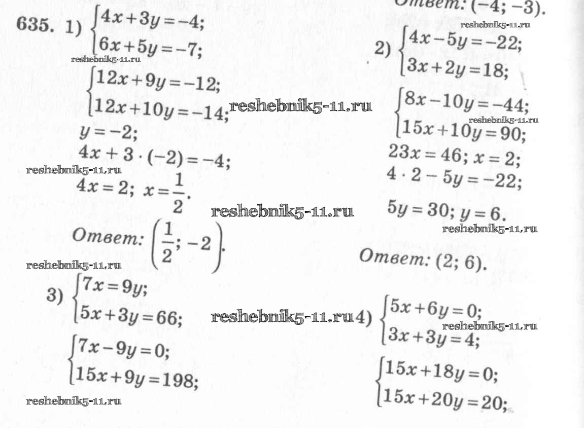 Готовая домашняя работа с ответами по Алгебре за 7 класс Колягин, Ткачёва, Федорова, Шабунин Учебник Просвещение 2014 ФГОС - §35. Способ сложения 635