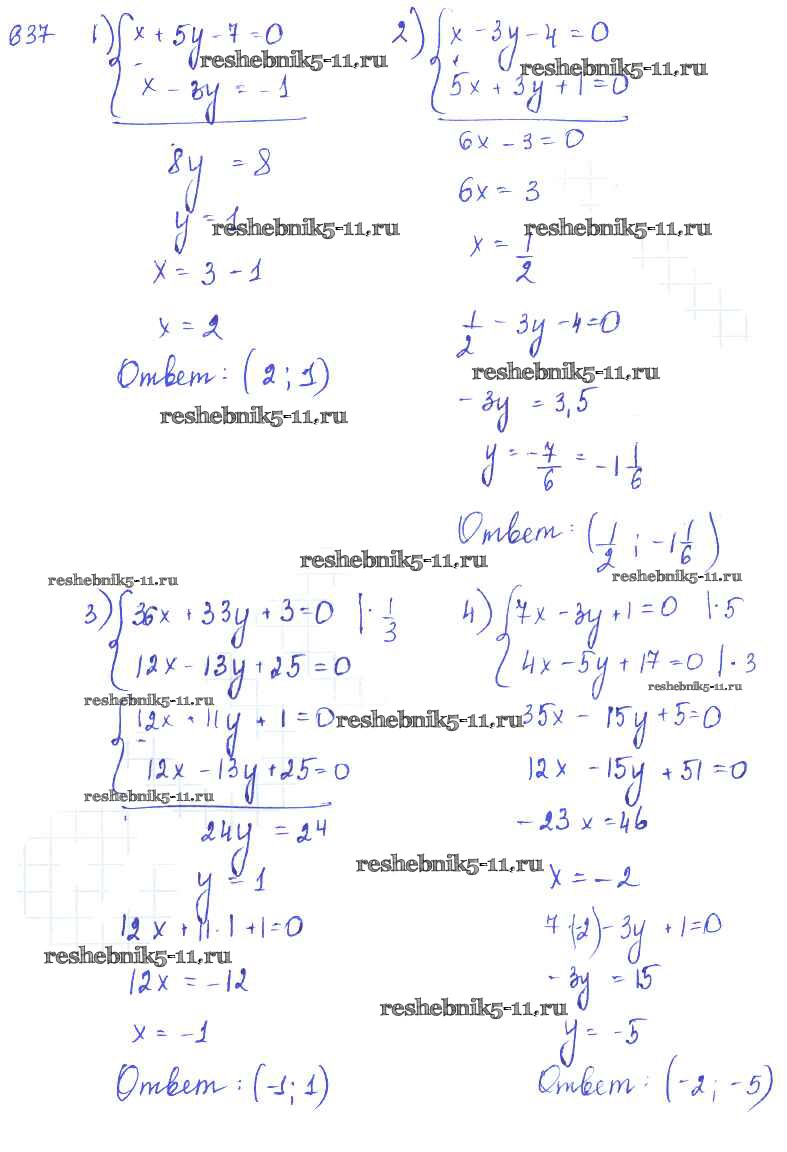 Готовая домашняя работа с ответами по Алгебре за 7 класс Колягин, Ткачёва, Федорова, Шабунин Учебник Просвещение 2014 ФГОС - §35. Способ сложения 637