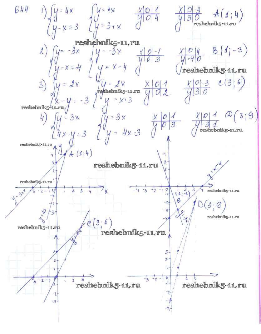 Готовая домашняя работа с ответами по Алгебре за 7 класс Колягин, Ткачёва, Федорова, Шабунин Учебник Просвещение 2014 ФГОС - §36. Графический способ решения систем уравнений 644