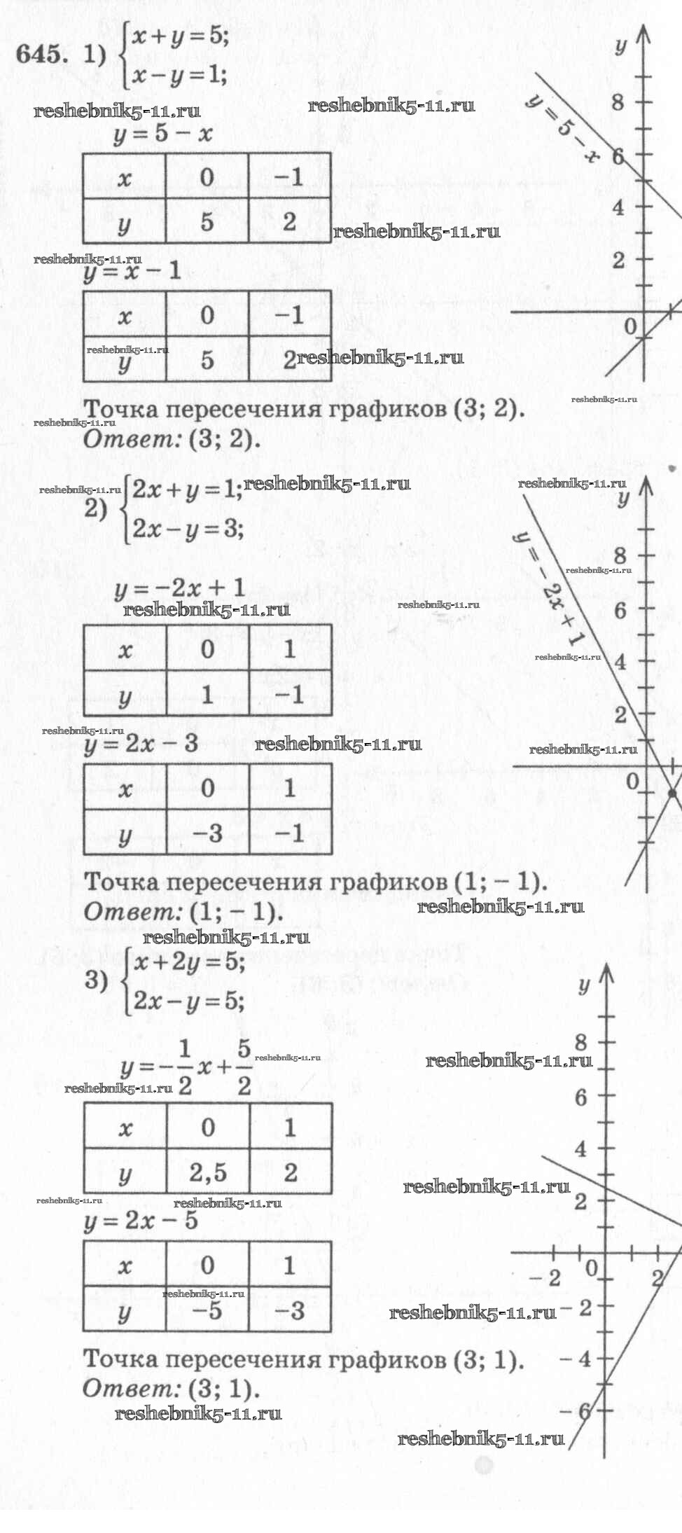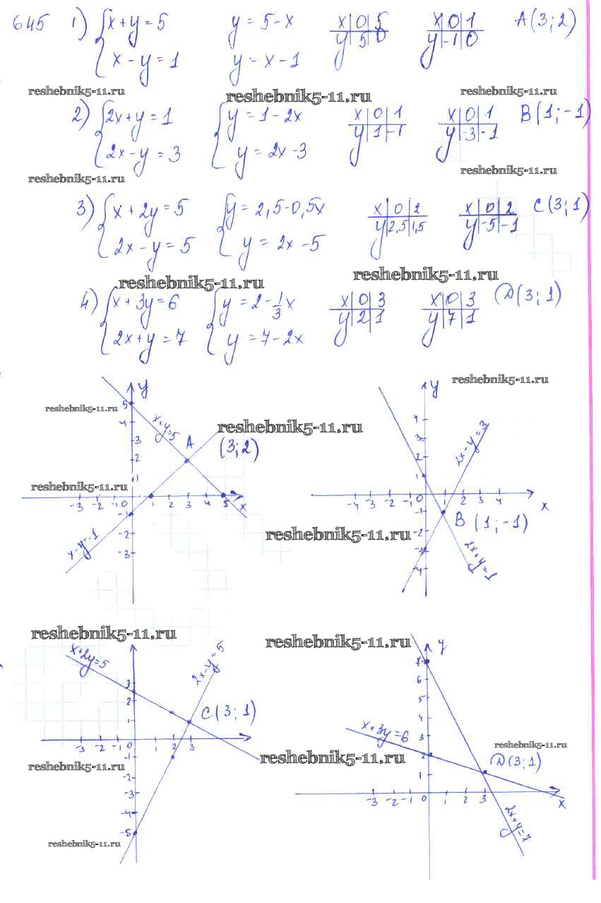 Готовая домашняя работа с ответами по Алгебре за 7 класс Колягин, Ткачёва, Федорова, Шабунин Учебник Просвещение 2014 ФГОС - §36. Графический способ решения систем уравнений 645