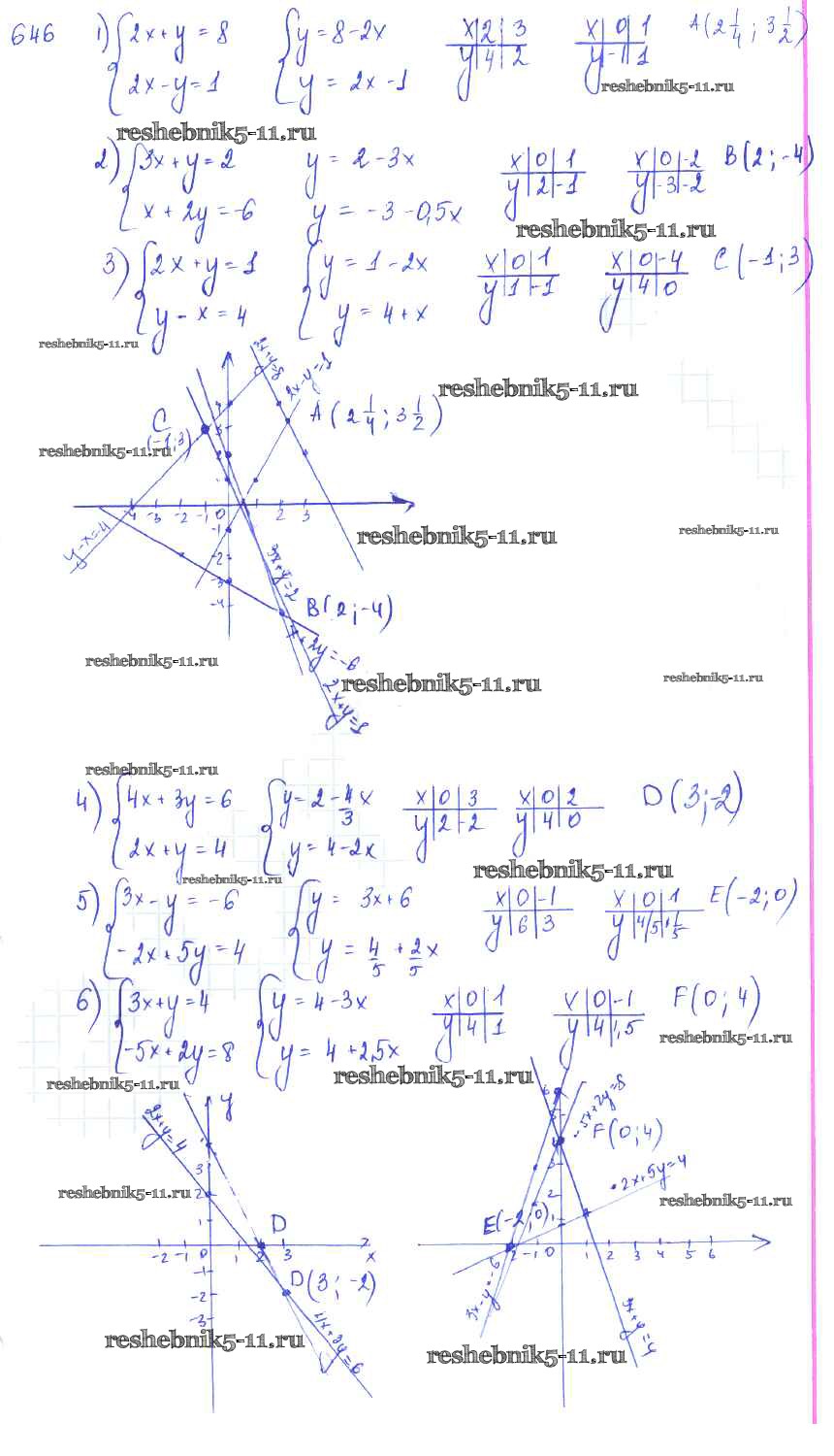 Готовая домашняя работа с ответами по Алгебре за 7 класс Колягин, Ткачёва, Федорова, Шабунин Учебник Просвещение 2014 ФГОС - §36. Графический способ решения систем уравнений 646
