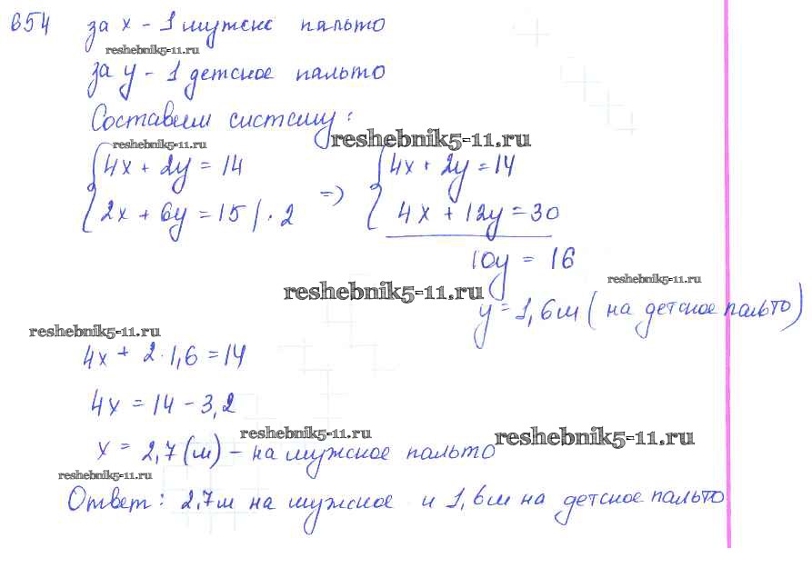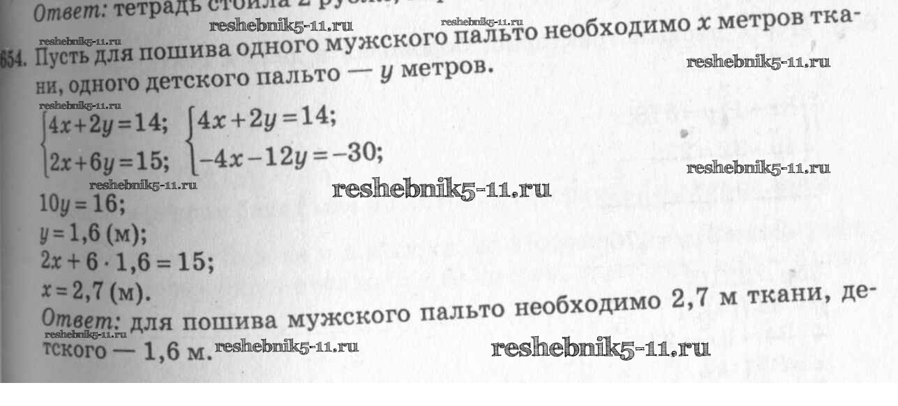 Готовая домашняя работа с ответами по Алгебре за 7 класс Колягин, Ткачёва, Федорова, Шабунин Учебник Просвещение 2014 ФГОС - §37. Решение задач с помощью систем уравнений 654