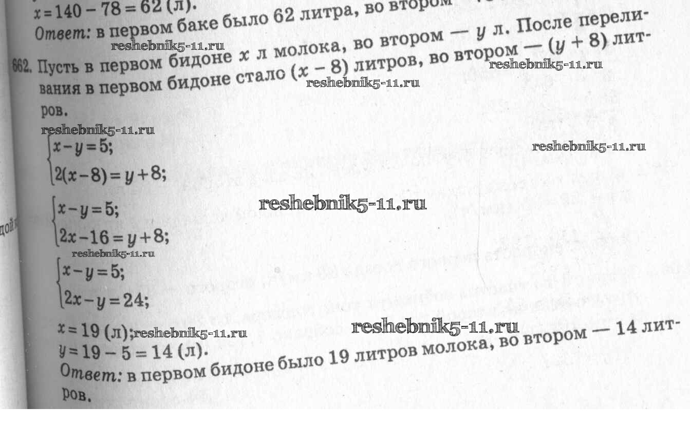 Готовая домашняя работа с ответами по Алгебре за 7 класс Колягин, Ткачёва, Федорова, Шабунин Учебник Просвещение 2014 ФГОС - §37. Решение задач с помощью систем уравнений 662