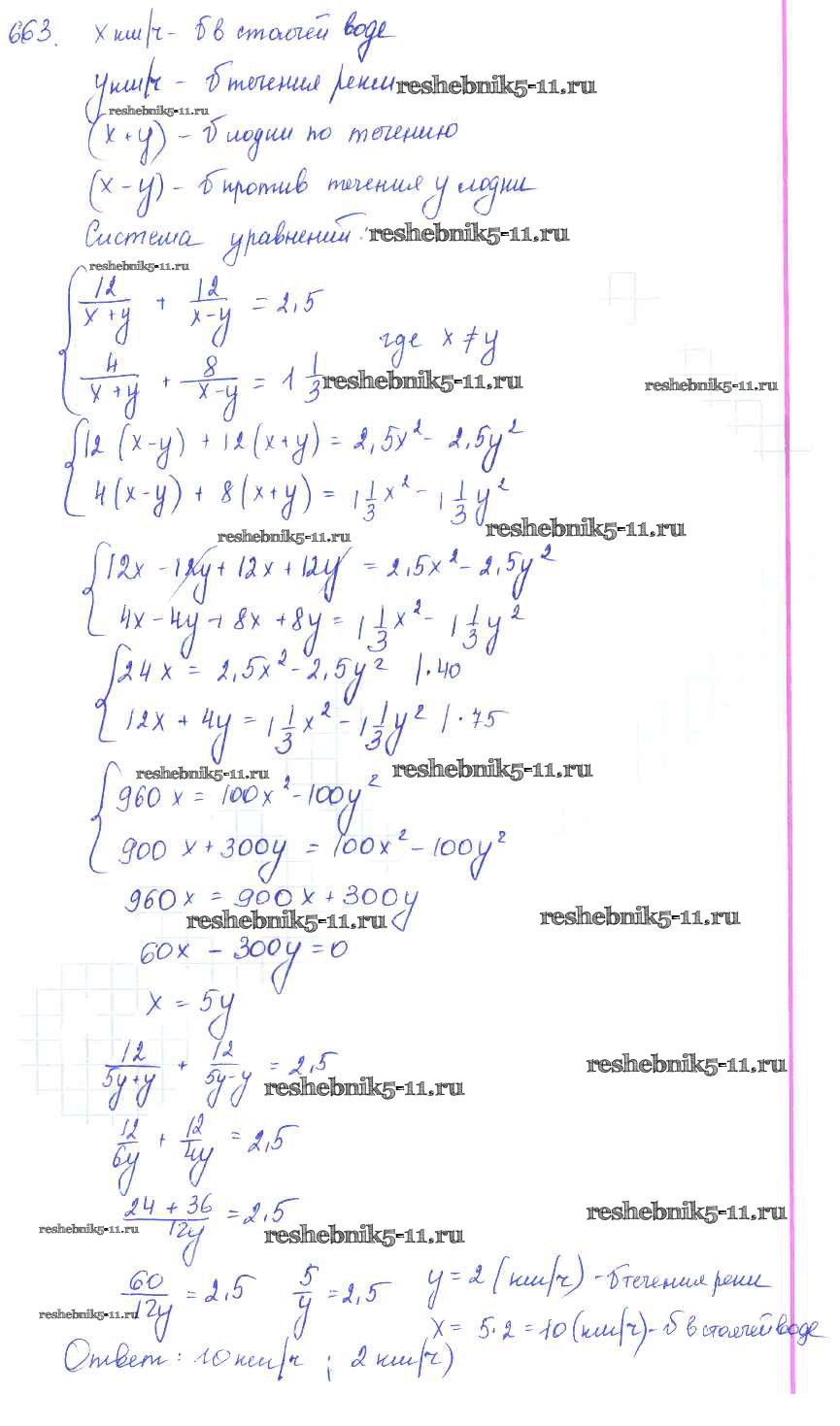 Готовая домашняя работа с ответами по Алгебре за 7 класс Колягин, Ткачёва, Федорова, Шабунин Учебник Просвещение 2014 ФГОС - §37. Решение задач с помощью систем уравнений 663