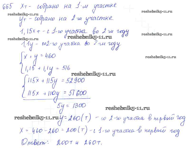 Готовая домашняя работа с ответами по Алгебре за 7 класс Колягин, Ткачёва, Федорова, Шабунин Учебник Просвещение 2014 ФГОС - §37. Решение задач с помощью систем уравнений 665