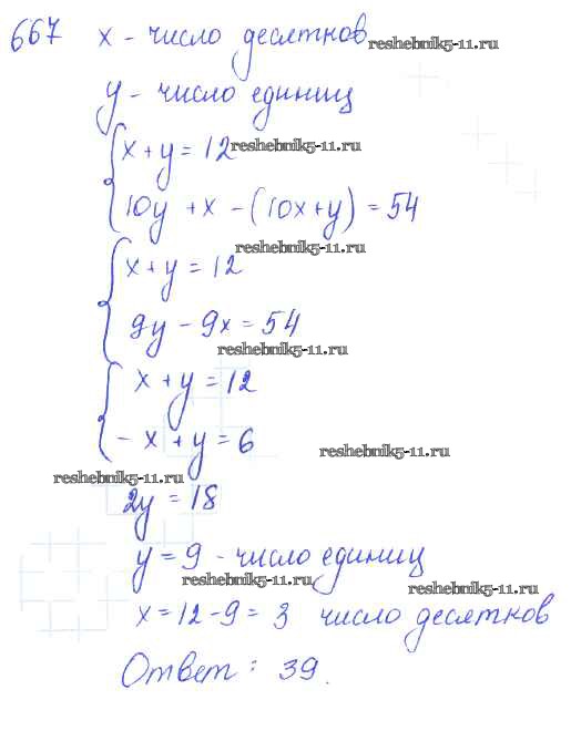 Готовая домашняя работа с ответами по Алгебре за 7 класс Колягин, Ткачёва, Федорова, Шабунин Учебник Просвещение 2014 ФГОС - §37. Решение задач с помощью систем уравнений 667