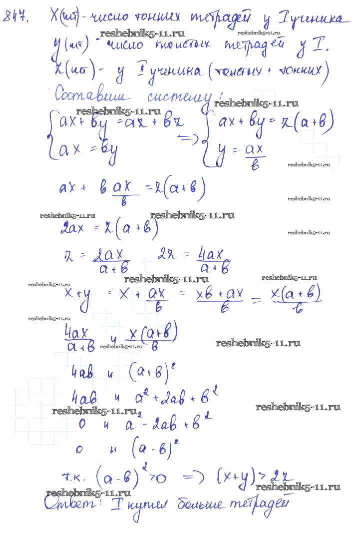 Готовая домашняя работа с ответами по Алгебре за 7 класс Колягин, Ткачёва, Федорова, Шабунин Учебник Просвещение 2014 ФГОС - Задачи для внеклассной работы 847