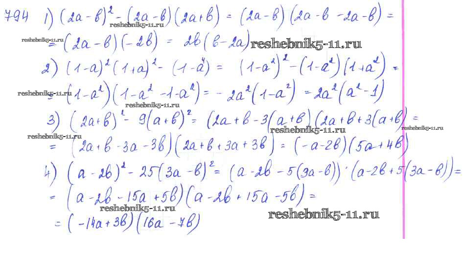 Готовая домашняя работа с ответами по Алгебре за 7 класс Колягин, Ткачёва, Федорова, Шабунин Учебник Просвещение 2014 ФГОС - Упражнения для повторения курса алгебры 7 класса 794