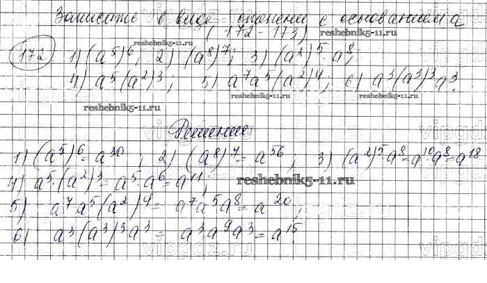 Готовая домашняя работа с ответами по Алгебре за 7 класс Колягин, Ткачева, Федорова, Шабунин Учебник УМК Просвещение 2012 ФГОС - Упражнения 172