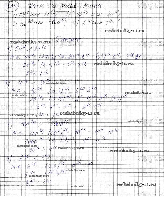 Готовая домашняя работа с ответами по Алгебре за 7 класс Колягин, Ткачева, Федорова, Шабунин Учебник УМК Просвещение 2012 ФГОС - Упражнения 205
