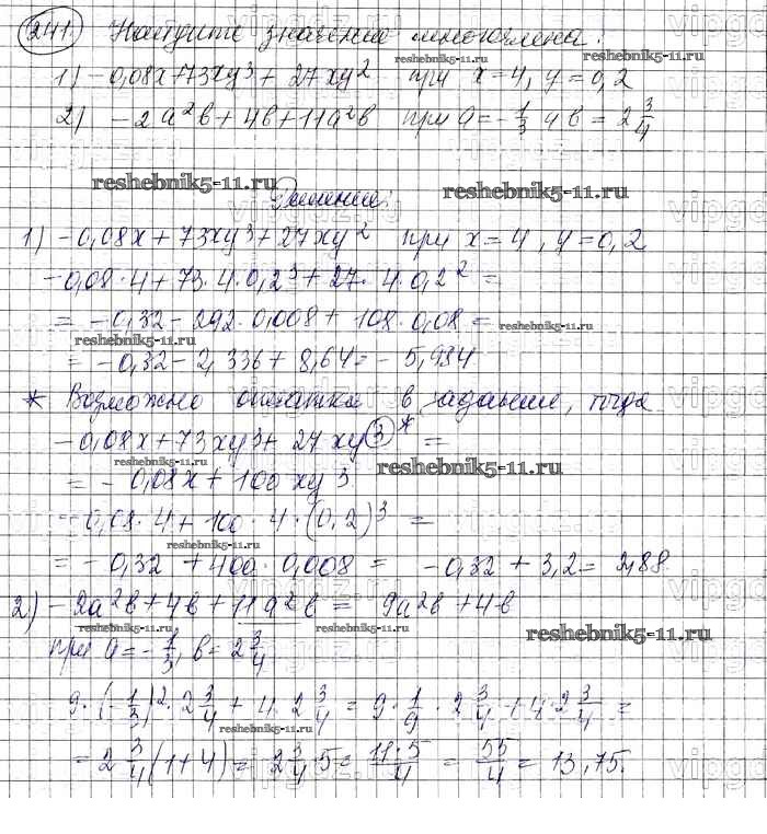 Готовая домашняя работа с ответами по Алгебре за 7 класс Колягин, Ткачева, Федорова, Шабунин Учебник УМК Просвещение 2012 ФГОС - Упражнения 241