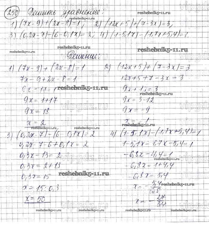 Готовая домашняя работа с ответами по Алгебре за 7 класс Колягин, Ткачева, Федорова, Шабунин Учебник УМК Просвещение 2012 ФГОС - Упражнения 250