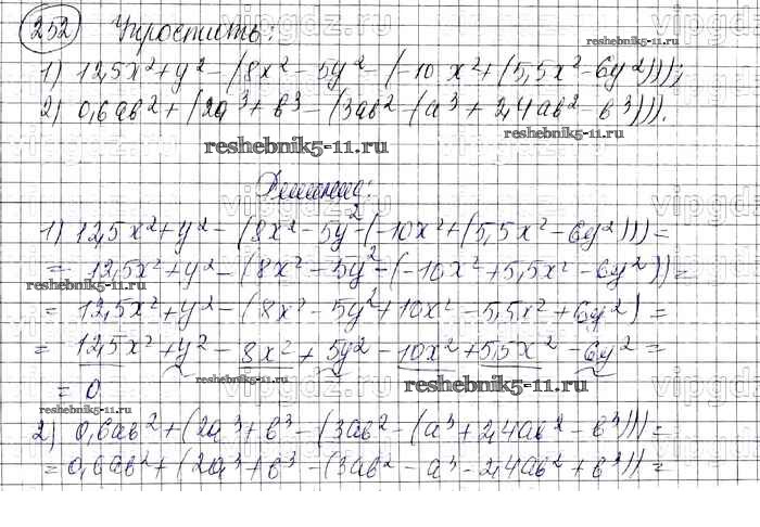 Готовая домашняя работа с ответами по Алгебре за 7 класс Колягин, Ткачева, Федорова, Шабунин Учебник УМК Просвещение 2012 ФГОС - Упражнения 252