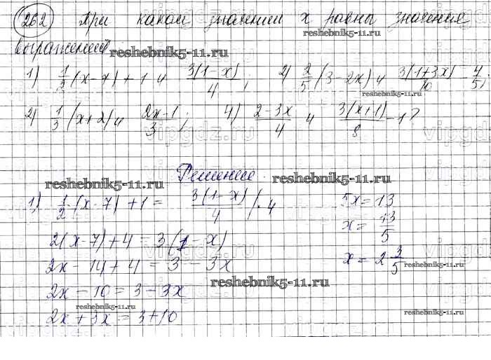 Готовая домашняя работа с ответами по Алгебре за 7 класс Колягин, Ткачева, Федорова, Шабунин Учебник УМК Просвещение 2012 ФГОС - Упражнения 262