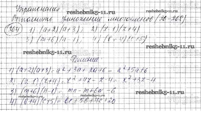 Готовая домашняя работа с ответами по Алгебре за 7 класс Колягин, Ткачева, Федорова, Шабунин Учебник УМК Просвещение 2012 ФГОС - Упражнения 264