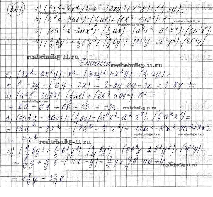 Готовая домашняя работа с ответами по Алгебре за 7 класс Колягин, Ткачева, Федорова, Шабунин Учебник УМК Просвещение 2012 ФГОС - Упражнения 291
