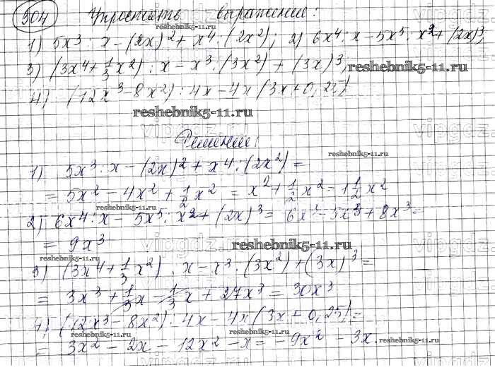 Готовая домашняя работа с ответами по Алгебре за 7 класс Колягин, Ткачева, Федорова, Шабунин Учебник УМК Просвещение 2012 ФГОС - Упражнения 304