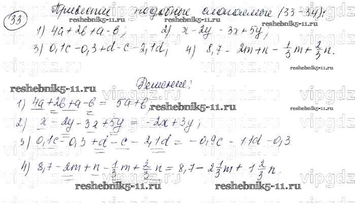 Готовая домашняя работа с ответами по Алгебре за 7 класс Колягин, Ткачева, Федорова, Шабунин Учебник УМК Просвещение 2012 ФГОС - Упражнения 33